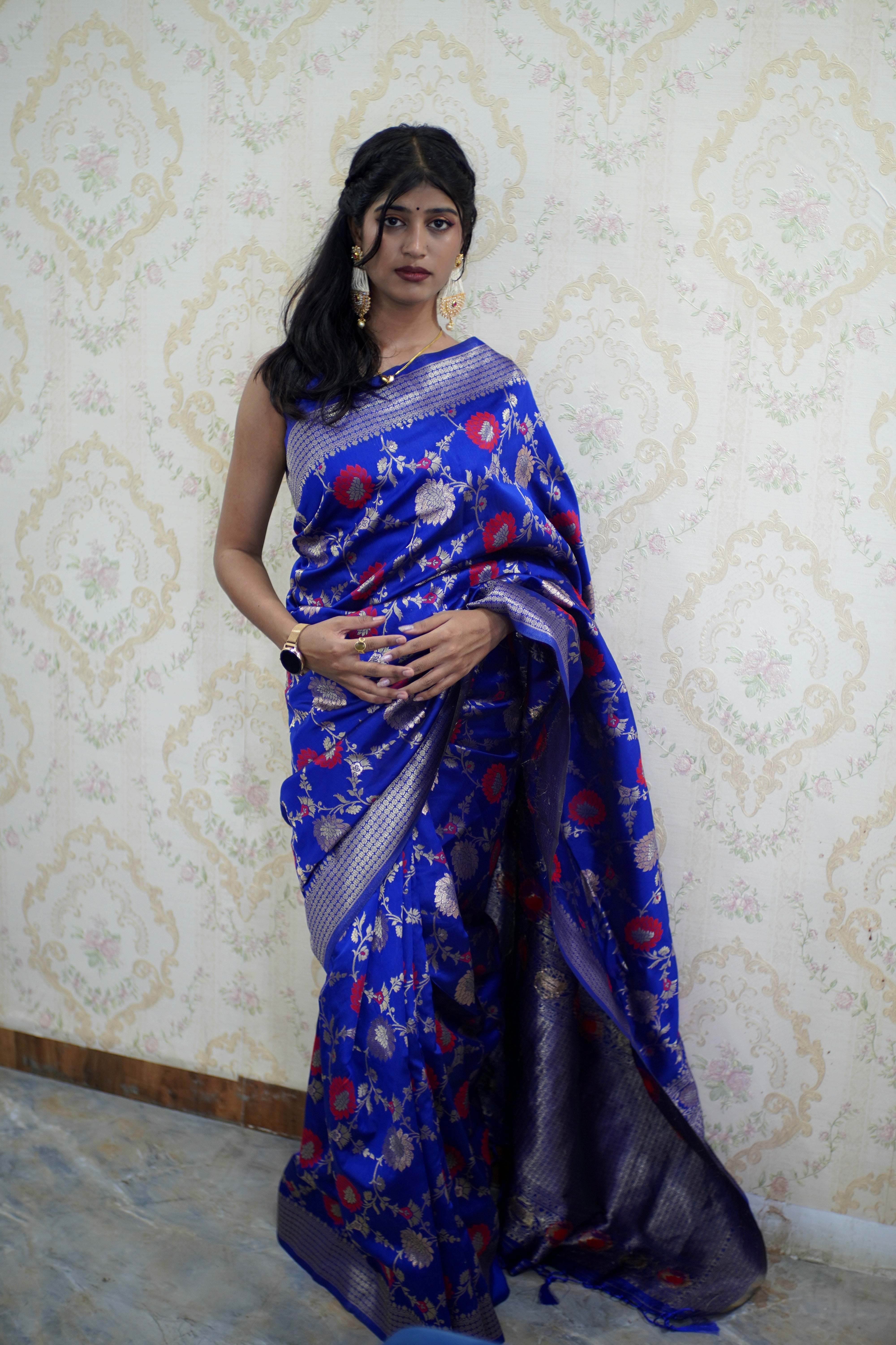 Sequence Flower Design saree with heavy pallu tassels on it.